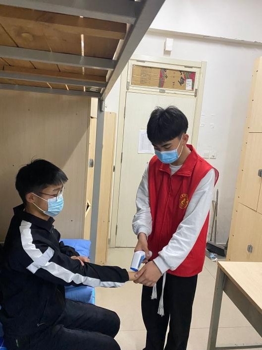 学生许传麟说:疫情期间,我志愿加入志愿者团队,在宿舍楼和餐厅执勤,执勤过程中,同学们都积极配合,疫情防控工作一直有条不紊的进行。