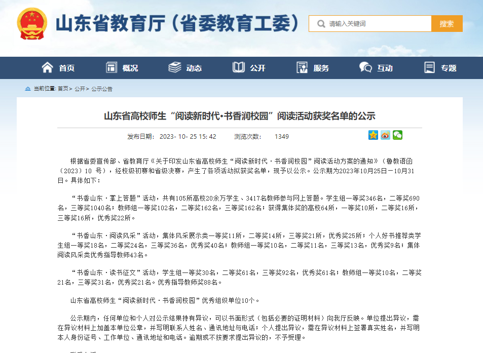 近日,山东省省委宣传部、山东省教育厅公布《山东省高校师生“阅读新时代·书香润校园”阅读活动获奖名单》,我校基础部教师崔晓云在“书香山东·掌上答题”中获得教师组一等奖。