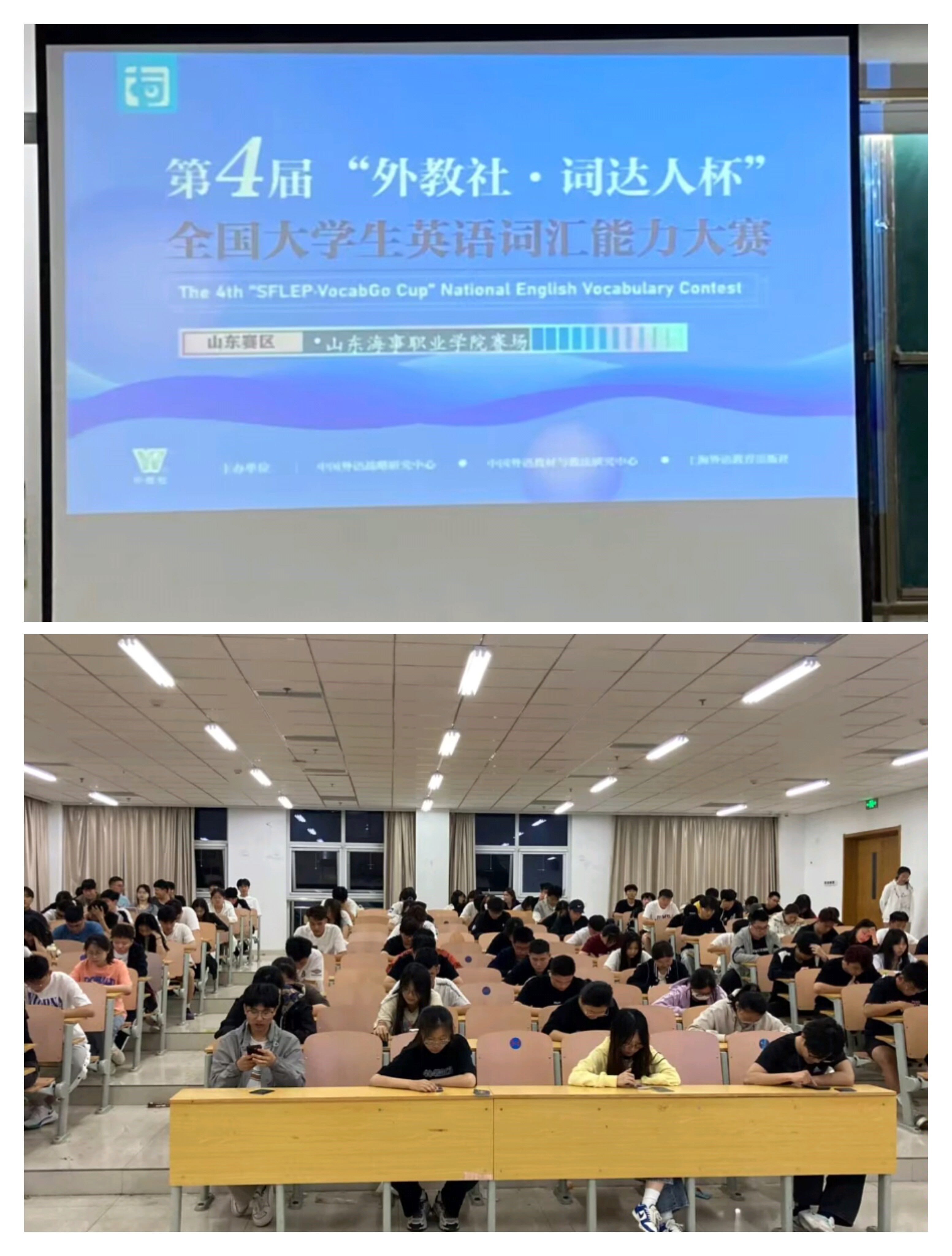 近日,第四届“外教社·词达人杯”全国大学生英语词汇能力大赛省赛山东海事职业学院赛场在我校顺利举行。