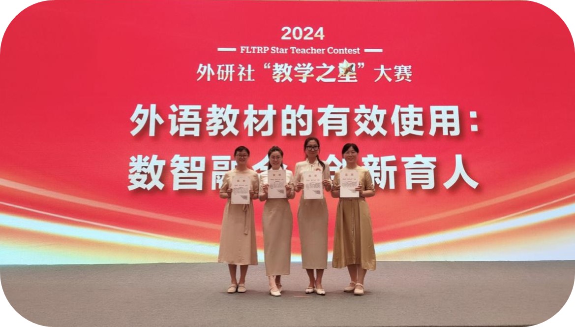 2024年6月,在2024外研社“教学之星”大赛全国复赛的113个参赛团队中,我校参赛团队脱颖而出,以第二名的成绩斩获全国复赛特等奖、并顺利晋级全国半决赛。2024年7月30日,在2024外研社“教学之星”大赛全国半决赛中,经过激烈而精彩角逐,我校教师团队再次荣获一等奖。
