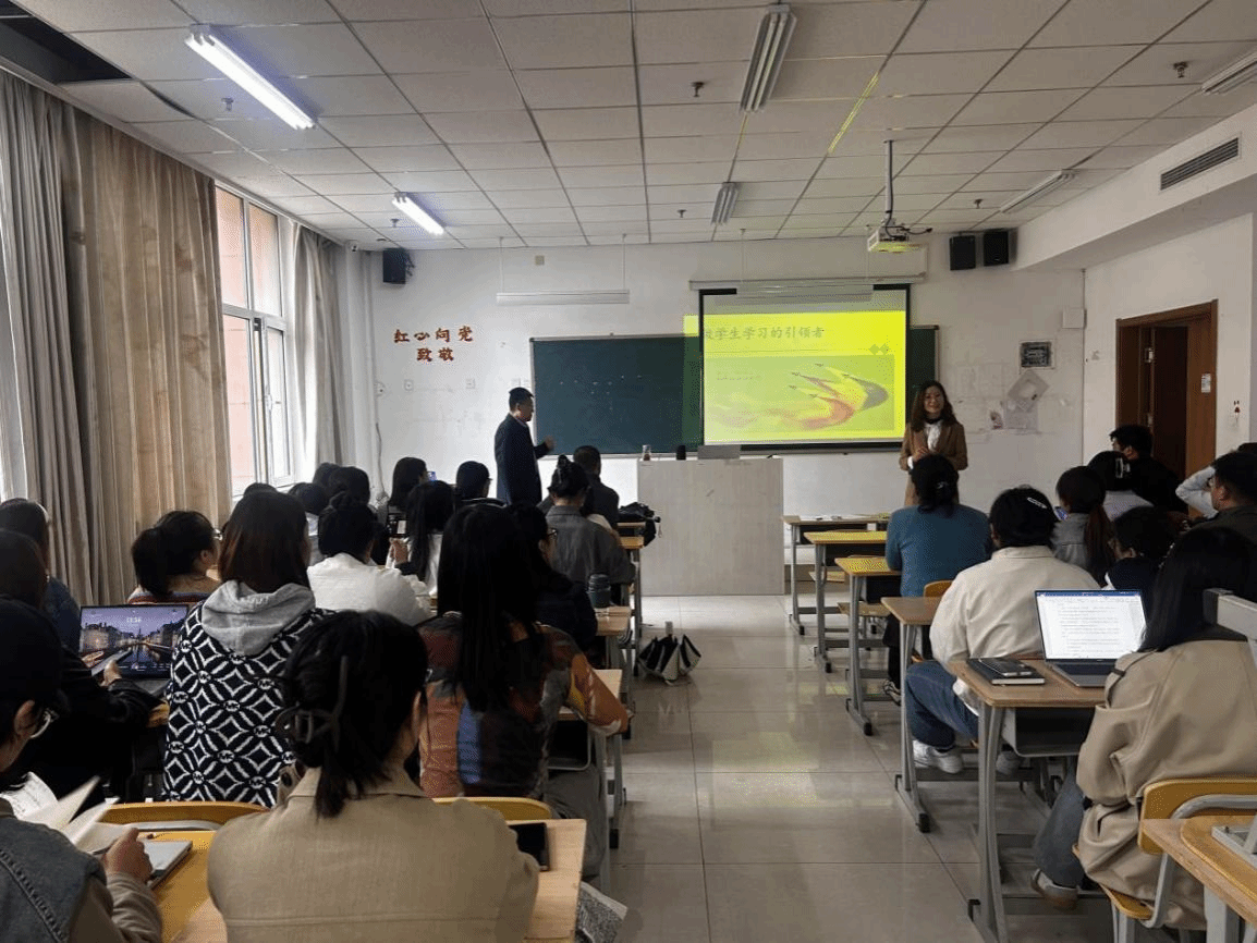 随后,丁文才教授以 “做学生学习的引领者” 为主题,聚焦新教师汇报课的设计与授课能力提升展开专项培训。结合新进教师的职业发展特点,丁教授以 “教育是什么”“职业教育十六字方针” 为切入点,结合职业教育的特性明确了教育的核心意义;在此基础上,他进一步围绕 “课堂常见问题解析”“职教课堂设计思路”“教师备课理性思考”“专业成长重点关注” 四个维度展开详细讲解,为新教师规避课堂常见问题、完善课程设计提供了切实指导。