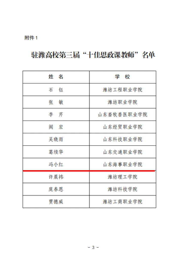经过自主申报、现场展示、专家论证等环节,我校马克思主义学院院长、基础部主任冯小红被评为潍坊市“十佳思政课教师”。