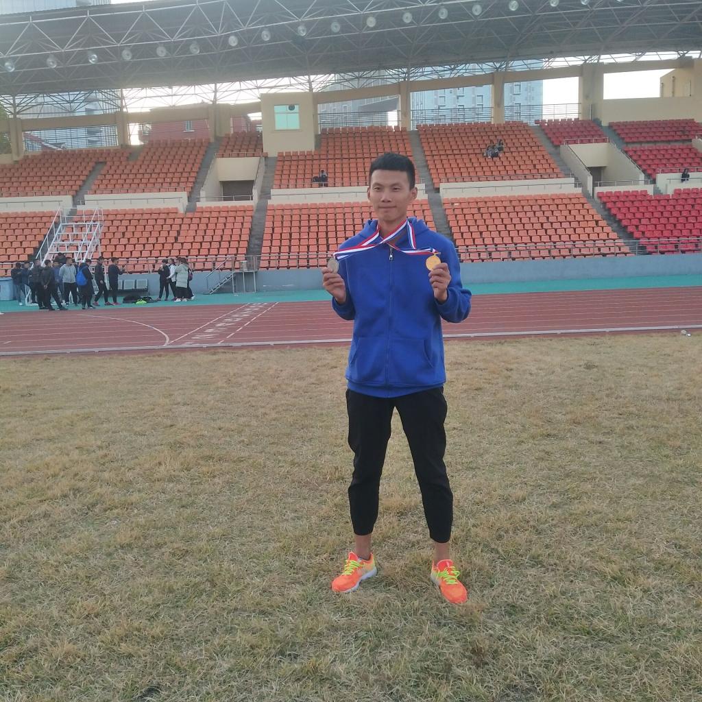 刘政同学在男子10000米项目中获得第一名;