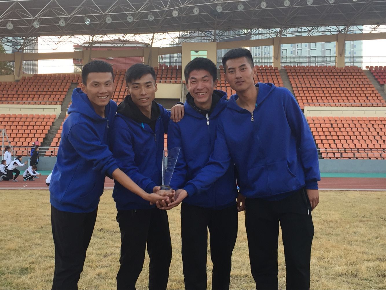 杨晓龙、王汉卿、刘政、蒋文鑫同学在男子4*400米项目上获得第七名
